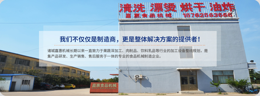 諸城市嘉惠食品機械有限公司始建于2004年,是一家集產品研發、生產銷售、售后服務于一體的專業食品機械制造廠家。公司位于中國山東諸城市,其地理位置優越,交通便利,是山東半島重要的交通樞紐,且食品機械制造業十分發達,規模強大,基礎雄厚,配套能力強。公司管理規范,擁有雄厚的技術實力和高素質的技術工人,配備有專業的工程師對客戶解疑答惑,完善的售后服務體系,為客戶提供設備安裝調試、人員培訓、技術改造等多項技術服務,并設有配件供應中心,保證設備配件的及時供應。公司以市場為導向,以客戶需求為中心,以致力解除勞動力和降低